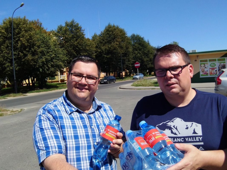 "Przypominamy mieszkańcom Zgierza, że upał może być niebezpieczny, dlatego trzeba pamiętać o kilku podstawowych zasadach, takich jak noszenie nakrycia głowy, możliwie jak najkrótsze przebywanie w pełnym słońcu i oczywiście picie dużej ilości napojów. Właśnie dlatego mamy dziś dla mieszkańców butelki wody, która pomoże przetrwać gorączki" - powiedział Łukasz Kubiak sekretarz SLD w powiecie zgierskim.
